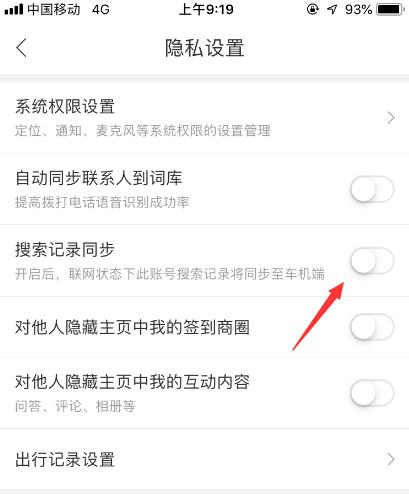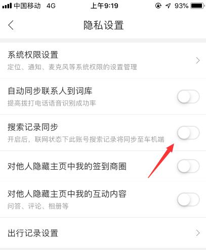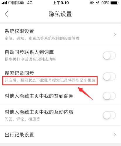 5、开启后,联网状态下此账号搜索记录将同步至车机端。