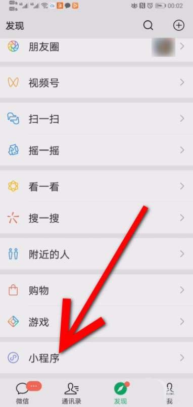 1、进入微信,点击发现,再点击小程序。
