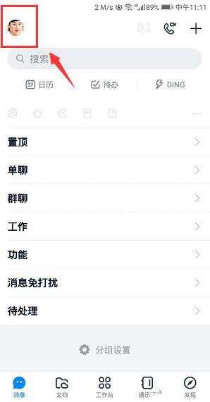 1、打开手机钉钉首页,点开左上角头像