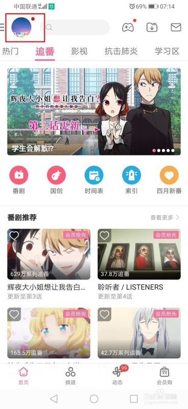 第一步打开哔哩哔哩,进去之后,点击账号头像,如下图所示: