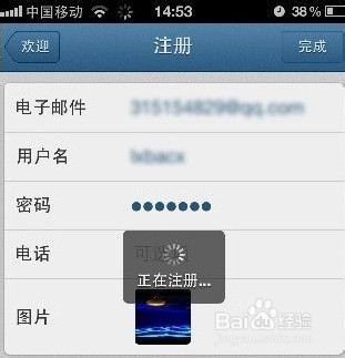 第四步:资料都完整后,点击完成。正在注册中。