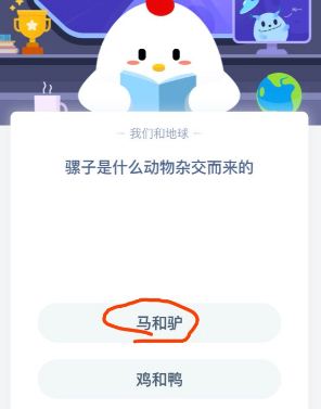 支付宝蚂蚁庄园中,玩家通过支付等方法来获得饲料养小鸡,每天参与庄园小课堂的答题也可以获得饲料哦,今天的题目是骡子是什么动物杂交而来的,小编为大家带来蚂蚁庄园答题攻略。