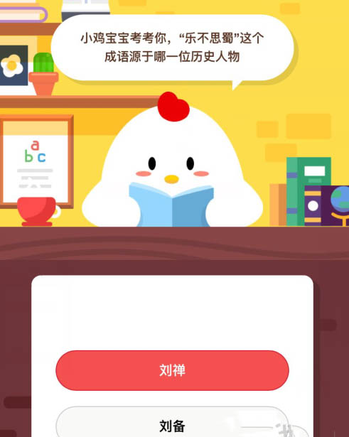 问题:小鸡宝宝考考你,乐不思蜀这个成语源于哪一位历史人物?