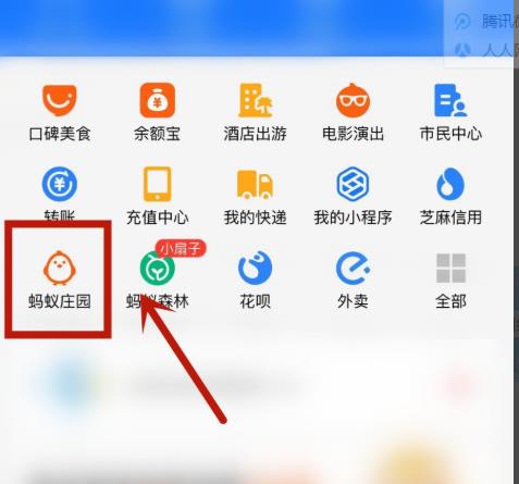 1.打开支付宝,点击进入蚂蚁庄园。
