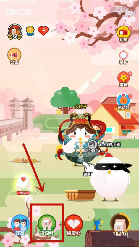 3、点击进入页面最下方的领饲料选项。