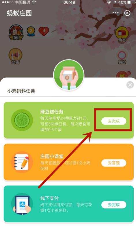以上就是支付宝蚂蚁庄园绿豆糕任务的完成方法,希望大家喜欢,请继续关注脚本之家。