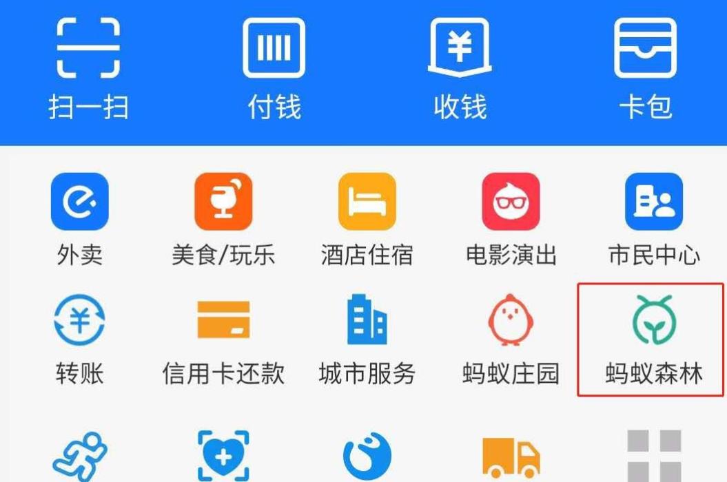 2、选择支付宝首页的“蚂蚁森林”应用;