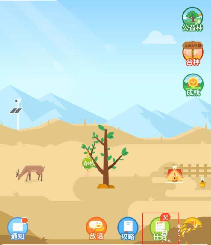 3、进入“蚂蚁森林”主页,选择界面中的“任务”选项;