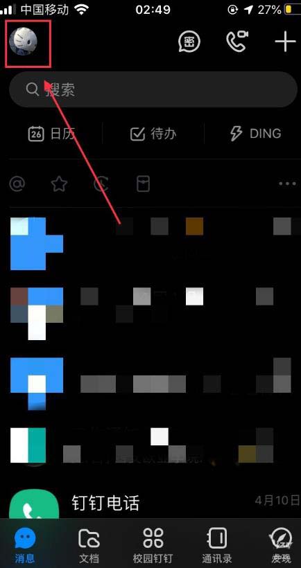 2、进入钉钉的界面,点击左上角我们登陆账号的头像。