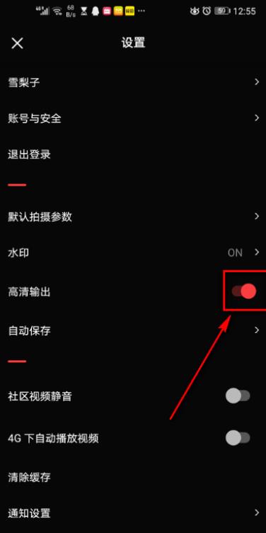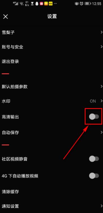 4、在高清输出处,点击右侧按钮。