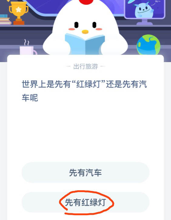 小鸡宝宝考考你以下和项中,世界上是先有红绿灯还是先有汽车?相信很多玩家都不知道这个答案,答对就可以领取到180g小鸡饲料。今天,小编为大家带来了蚂蚁庄园5月11日正确答案,感兴趣的朋友快来了解一下吧。