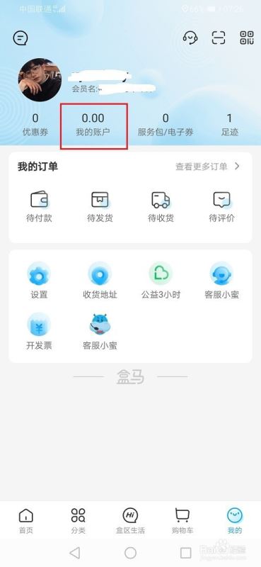 第二步进去盒马我的界面之后,点击我的账户,如下图所示: