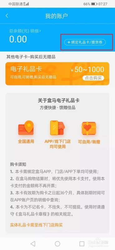 盒马绑定礼品卡教程