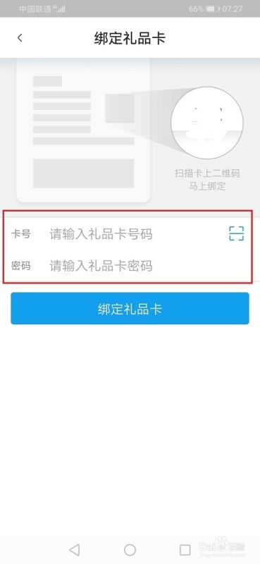 第四步进去绑定礼品卡界面之后,输入礼品卡卡号和密码,就可以进行绑定了,如下图所示: