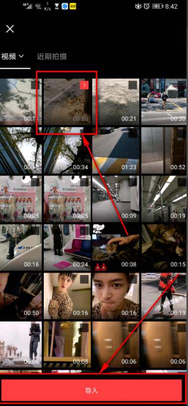 3、选择一段视频,点击下方导入。