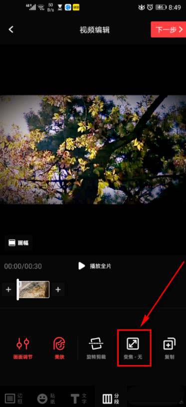 4、点开分段,选择变焦。
