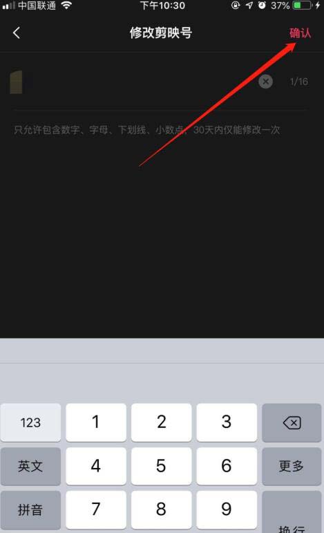 5、最后,输入新的剪映号,点击右上角的“确认”即可。