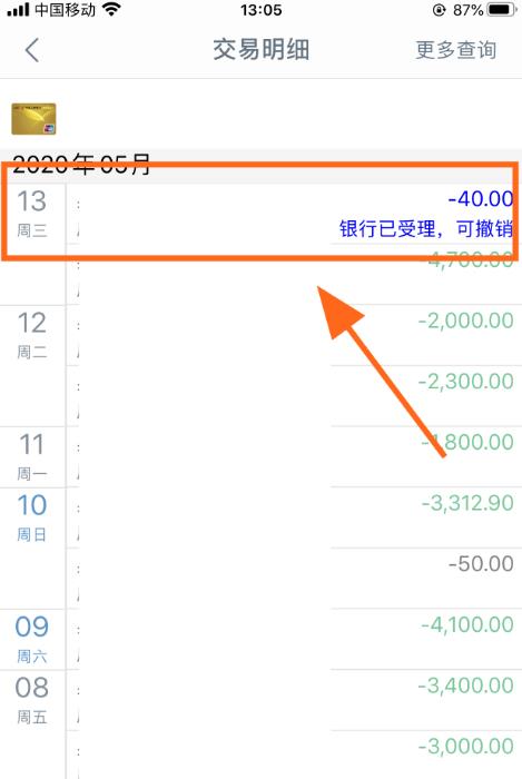 4、在汇款明细中找到【普通延迟汇款】的流水,后边显示的是蓝色字;