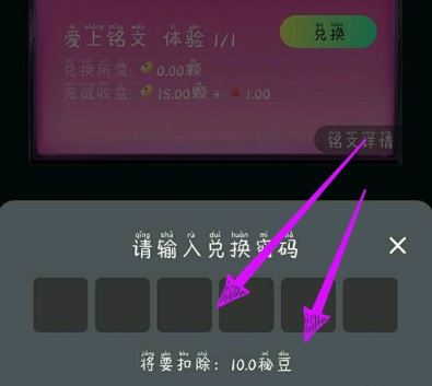 4、最后输入兑换密码扣除相应秘豆即可兑换铭文。