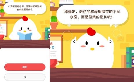 问题:小鸡宝宝考考你,骆驼的驼峰里储存的主要是什么?
