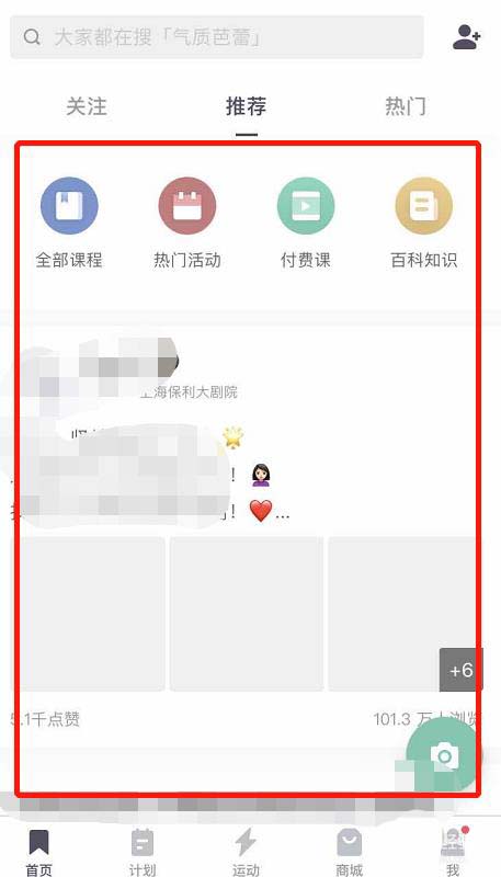 2、keep打开之后可以在首页内看见很多的课程以及一些达人分享的状态。
