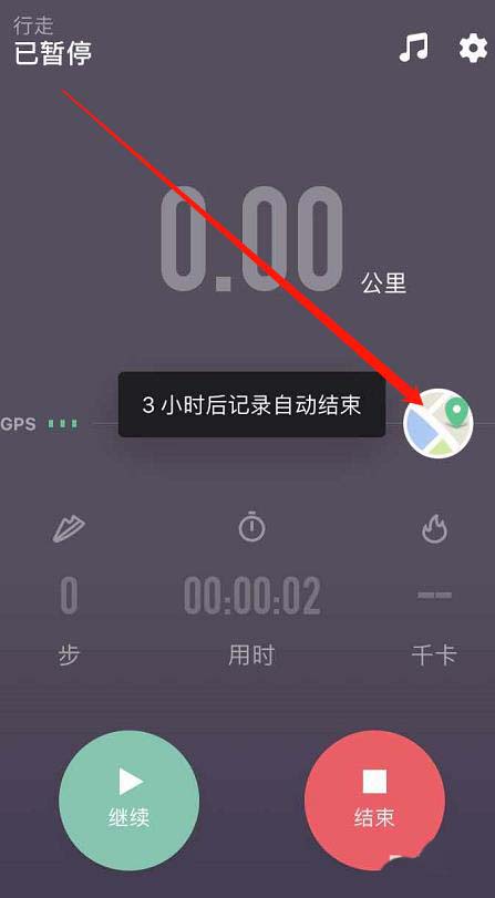 6、经过三秒钟的倒数之后,就会进入到下图所示的页面了,在这个页面内,就可以记录自己的行走情况卡了,点击小地图就会显示行走轨迹了。