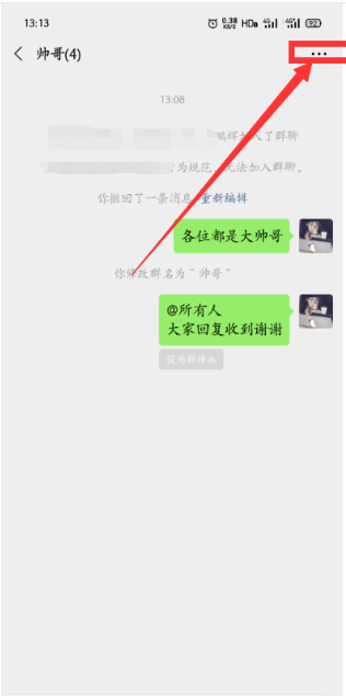 第一步:进入群聊聊天界面,点击右上角的【···】