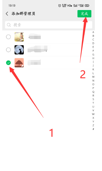 第五步:勾选✔需要设置为群管理员的好友,点击【完成】即可