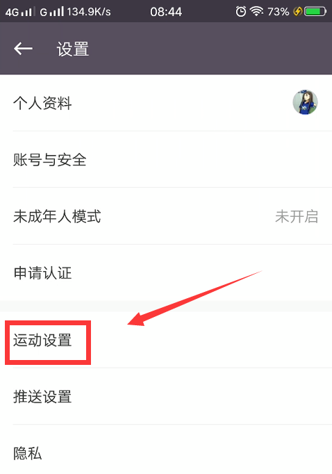 然后,我们在设置界面中可以找到“运动设置”选项卡,点击进入选项卡界面。