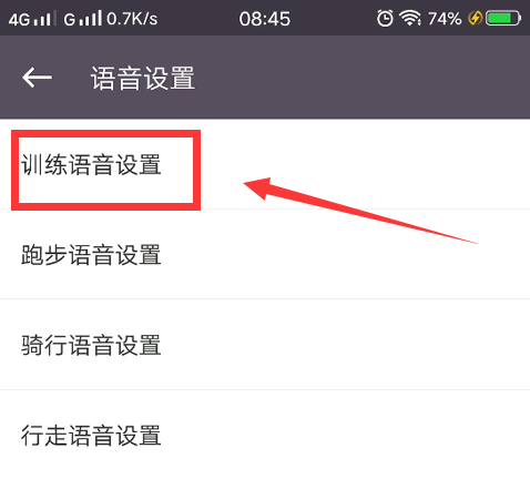 接着,我们在弹出的界面中找到“运动语音”的选项,点击选项进入运动语音设置界面。