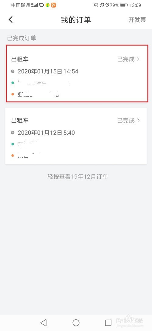 第三步进去订单之后,找到要联系司机的订单,点击进去,如下图所示: