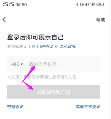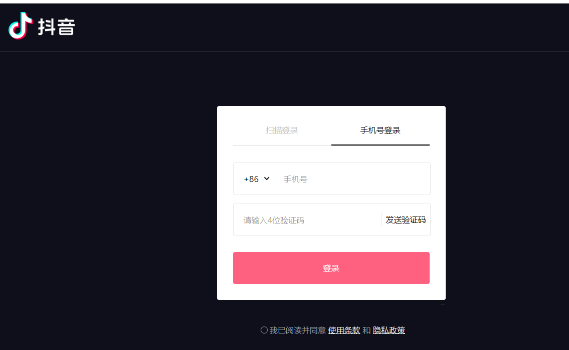 登录你刚刚在手机上注册的抖音号,输入手机号及验证码,点击“登录”