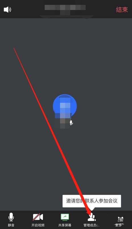 进入到快速会议页面内,点击底部菜单中的倒数第二个“管理成员”菜单。