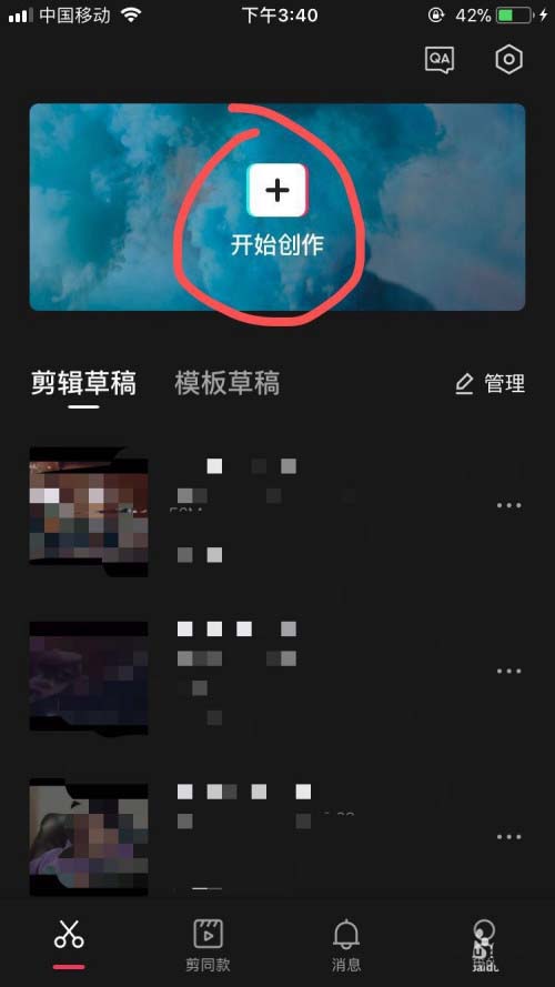 第一步,打开剪映,点击开始创作,导入一段视频素材(如图)