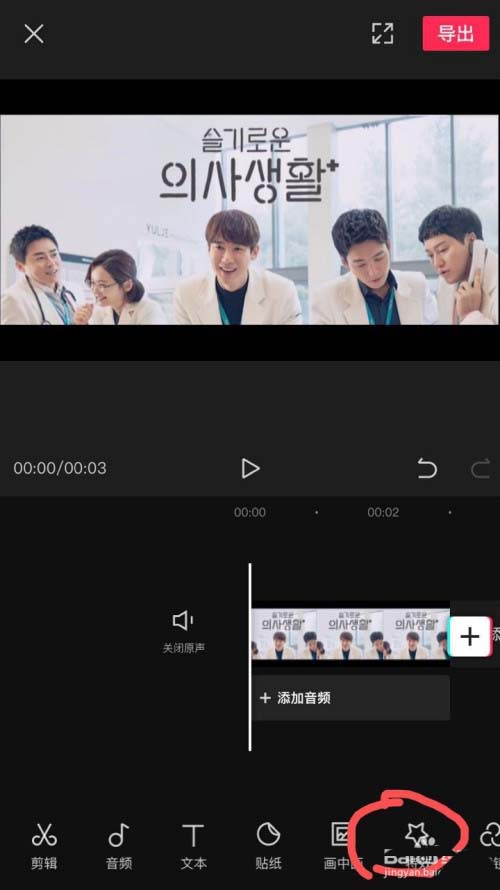 第二步,导入后,点击下方工具栏中的特效(如图)