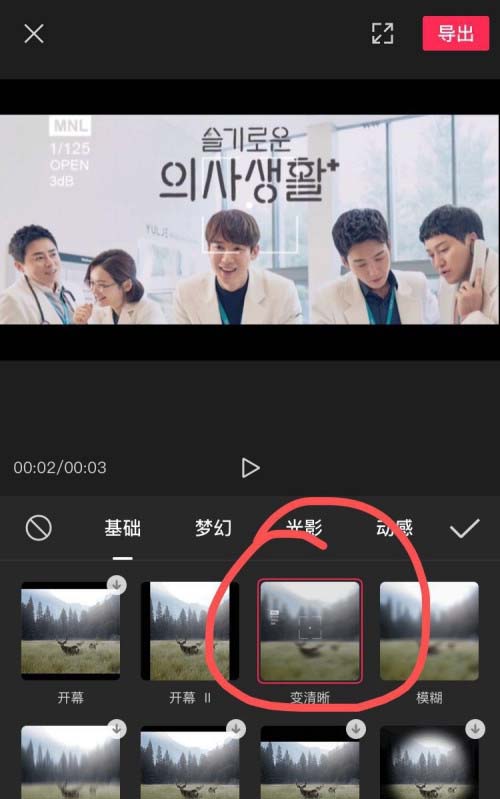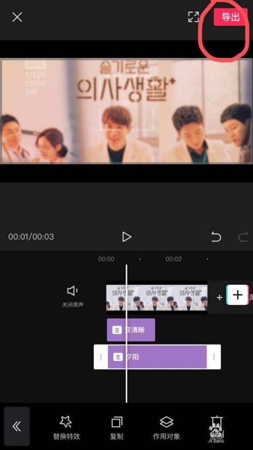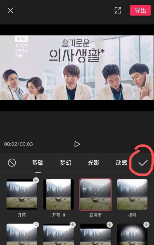 第五步,两次特效选择完成后,特效叠加就做好啦,点击导出,确认导出即可(如图)