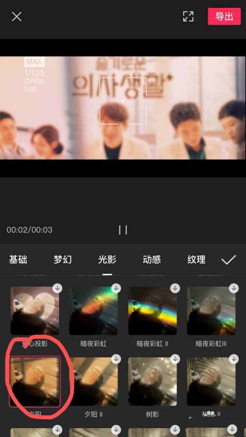 第四步,再次点击下方工具栏中的特效按钮,选择喜欢的特效(如图)