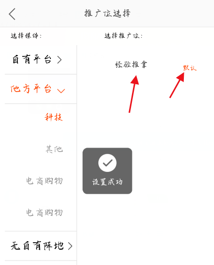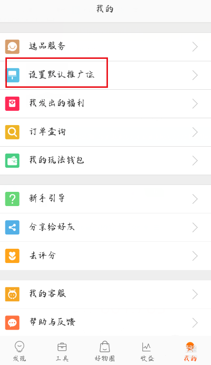 点击该推广位就会自动设置为默认推广位,后面也会显示“默认”图标。