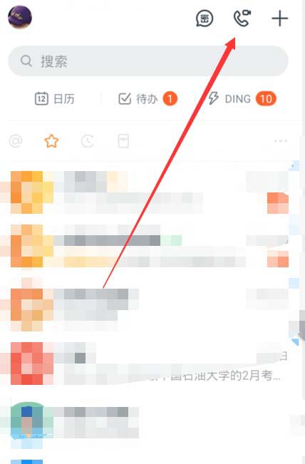 第一:手机进入钉钉客户端点击右上角的【电话】按钮。