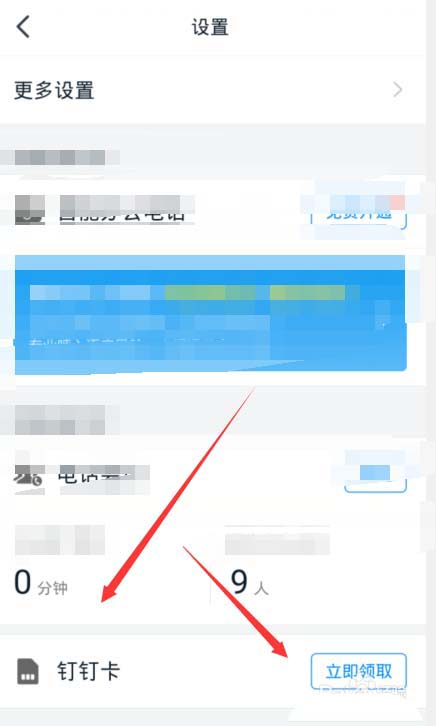 第三:进入设置中心找到下方的【钉钉卡】选项点击右侧的【领取】按钮。