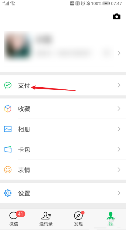 打开微信主页,点击右下角的【我】。进入【我】的界面后接着点击【支付】。
