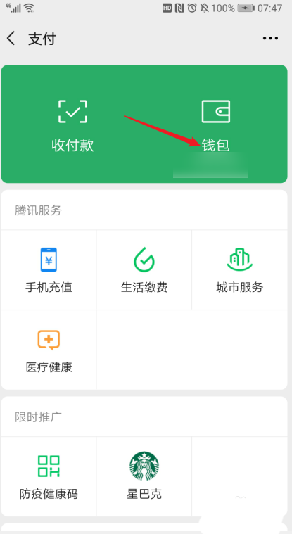 点击支付后,接着点击【钱包】。