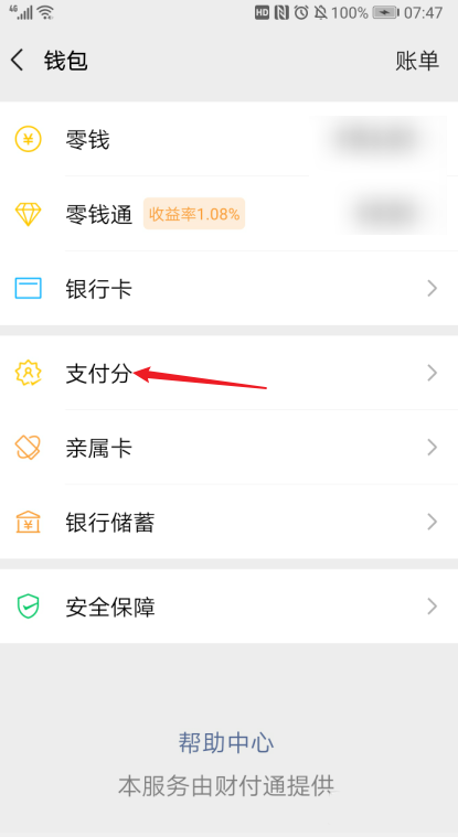 在钱包界面看到【支付分】,跟支付宝的芝麻分差不多性质。点击【支付分】。