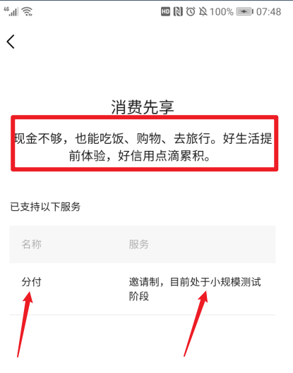 看到提示,如果你的支付分页面出现发【分付】的选项,那就是内测者,如果没有,那只能再等等,因为现在只是小规模测试中。