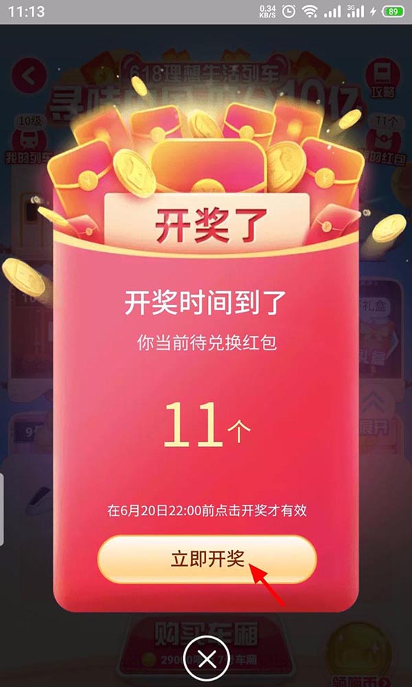 3、进入开奖界面,点击 立即开奖;