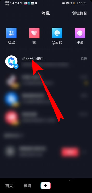 2、登录进入抖音之后,点击页面下方的消息。