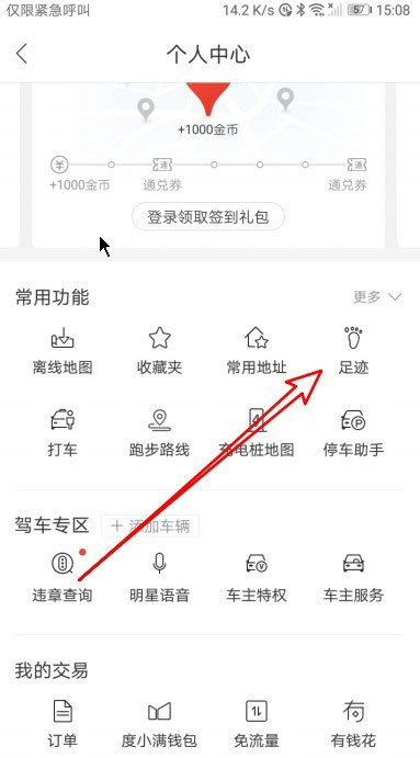 接着在打开的个人中心页面点击足迹的按钮。