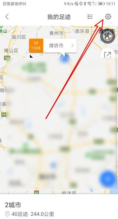 这时会打开我的足迹页面,点击右上角的设置图标。