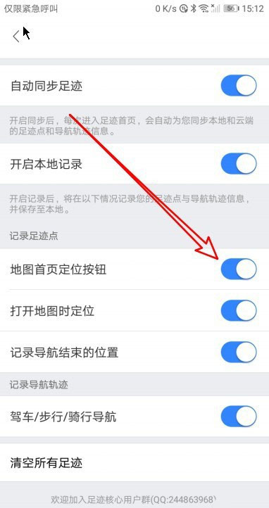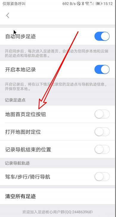 在打开的设置页面找到地图首页,定位按钮的设置项。
