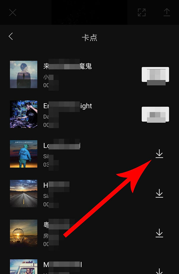 6、打开卡点音乐界面,点击音乐右侧的“下载”图标